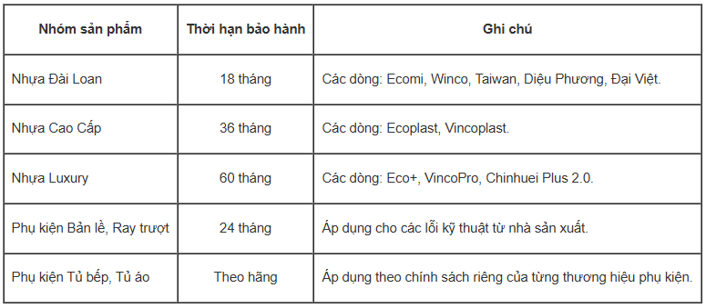 1. Thời hạn bảo hành chi tiết: